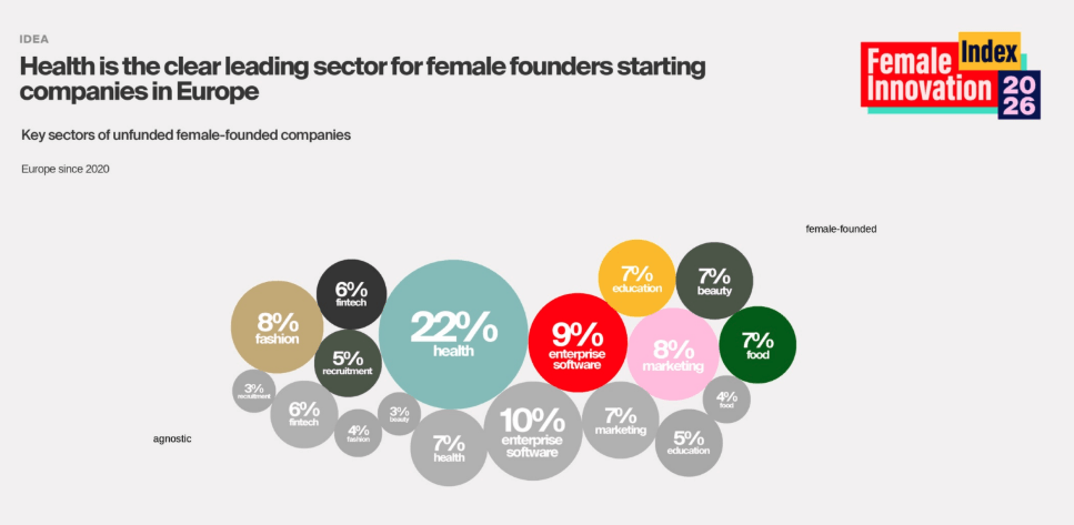 La santé a encore renforcé sa position de secteur leader en matière de création et de financement d’entreprises parmi les startups fondées par des femmes en Europe en 2025, capturant